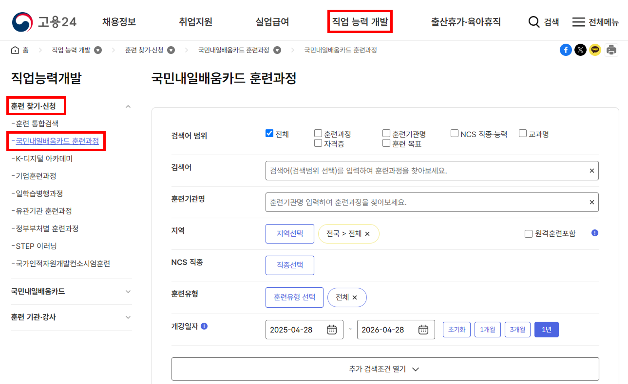1. °í¿ë24¿¡¼ ȸ¿ø °¡ÀÔ ÈÄ <Á÷¾÷ ´É·Â °³¹ß> ÅÇ¿¡¼ <±¹¹Î³»ÀϹè¿òÄ«µå>¸¦ Ŭ¸¯ÇØÁÖ¼¼¿ä.